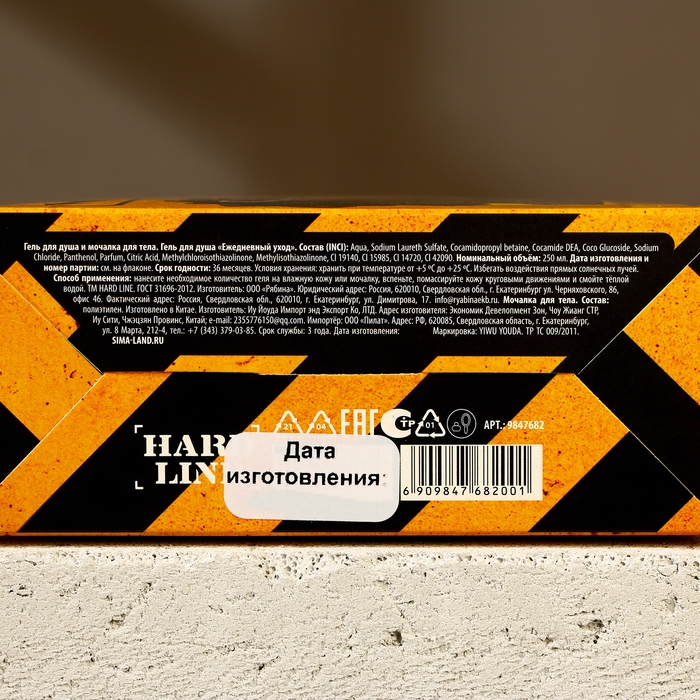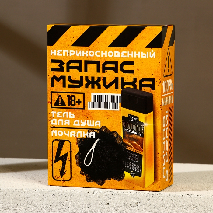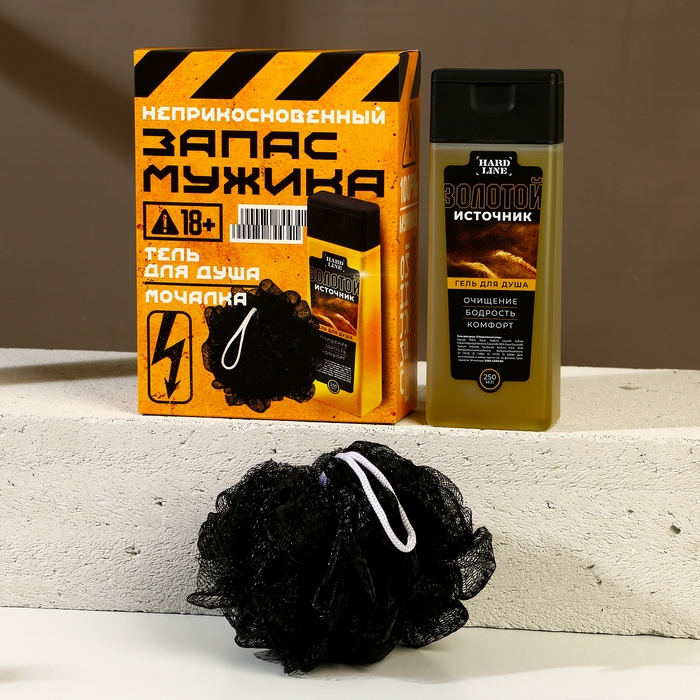 Подарочный набор косметики «Запас мужика», гель для душа 250 мл и мочалка, HARD LINE