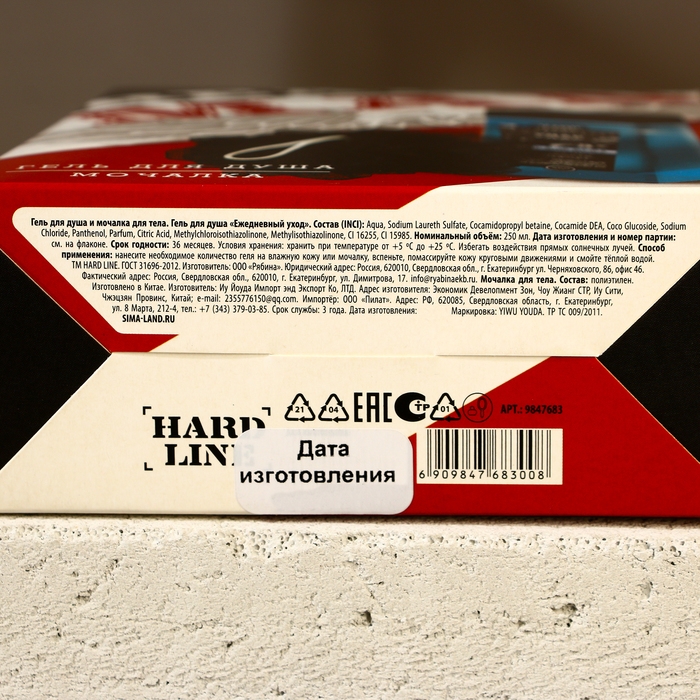 Подарочный набор косметики REAL MAN, гель для душа 250 мл и мочалка для тела, HARD LINE