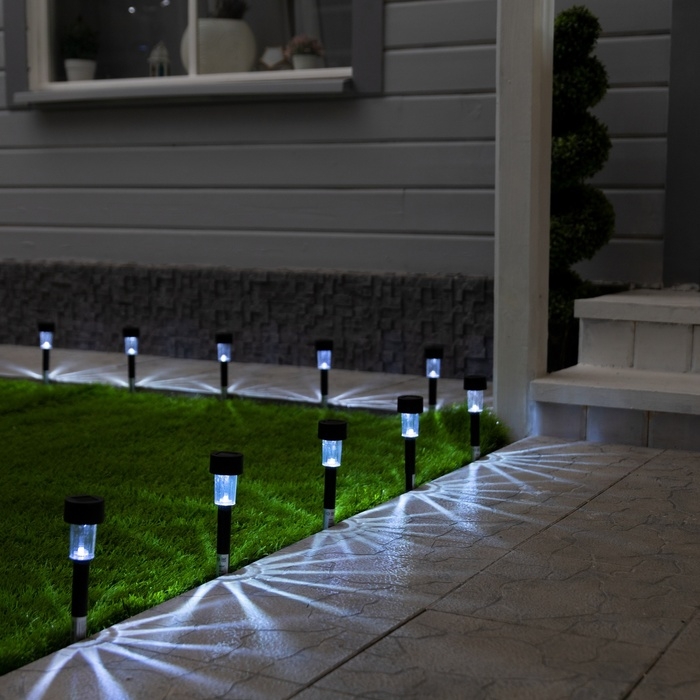 Набор садовых светильников на солнечной батарее «Цилиндр», 4.5 × 30 × 4.5 см, 1 LED, свечение белое, 10 шт.