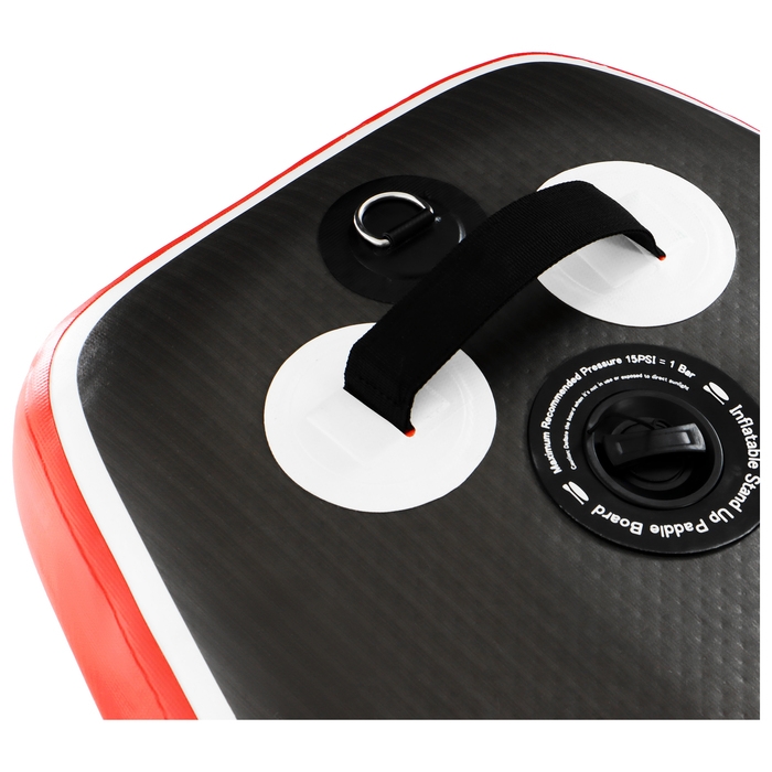 - Запирающийся нажимной клапан с защитой от повреждений обеспечивает герметичность. Кнопочная система помогает без труда приспустить давление в доске нажатием на кнопку в клапане.