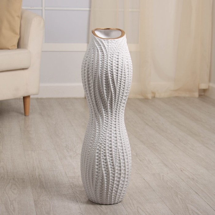 Керамическая ваза для цветов, сухоцветов «Дуайт», напольная, 60 см, белый