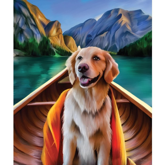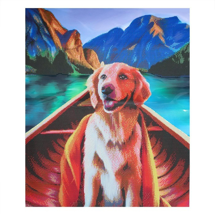 Алмазная мозаика с частичным заполнением на холсте «Пёс в лодке», 50 x 60 см