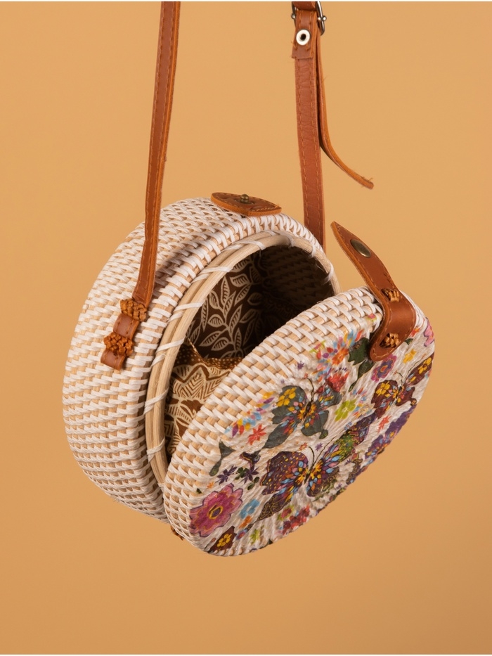 Сумка плетеная ротанг "Бабочки", 15х6х60 см