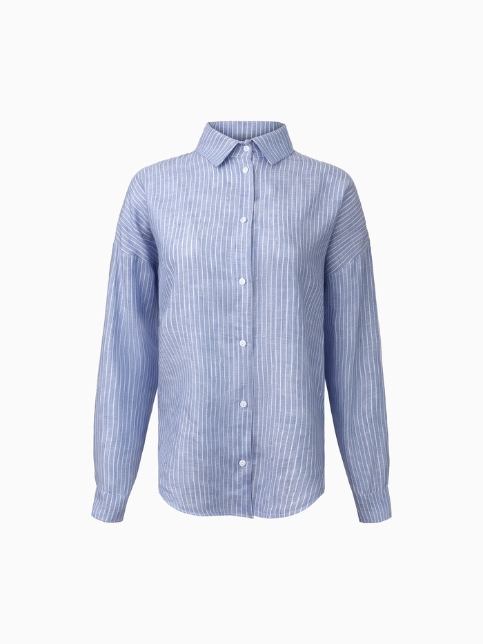 Рубашка женская MINAKU oversize в полоску, белая/голубая, размер 48