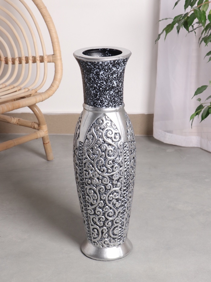 Ваза керамика напольная "Нико" 60х15 см, серебристо-чёрный