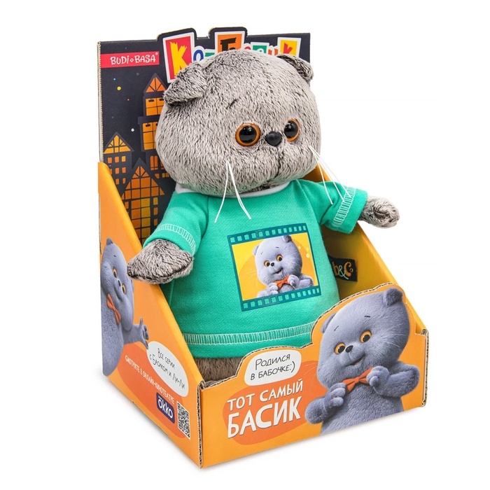 Мягкая игрушка "Басик в лонгсливе с принтом "Мультсериал", 19 см Ksm19-004