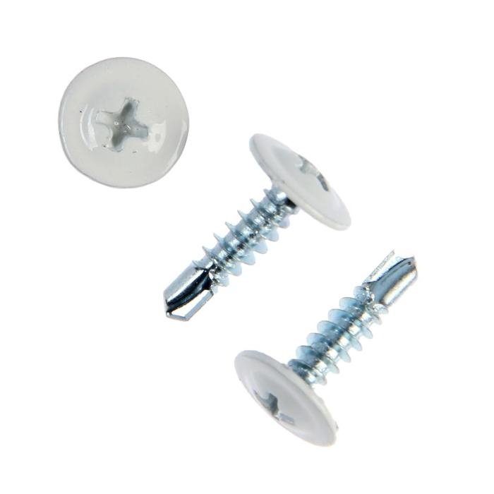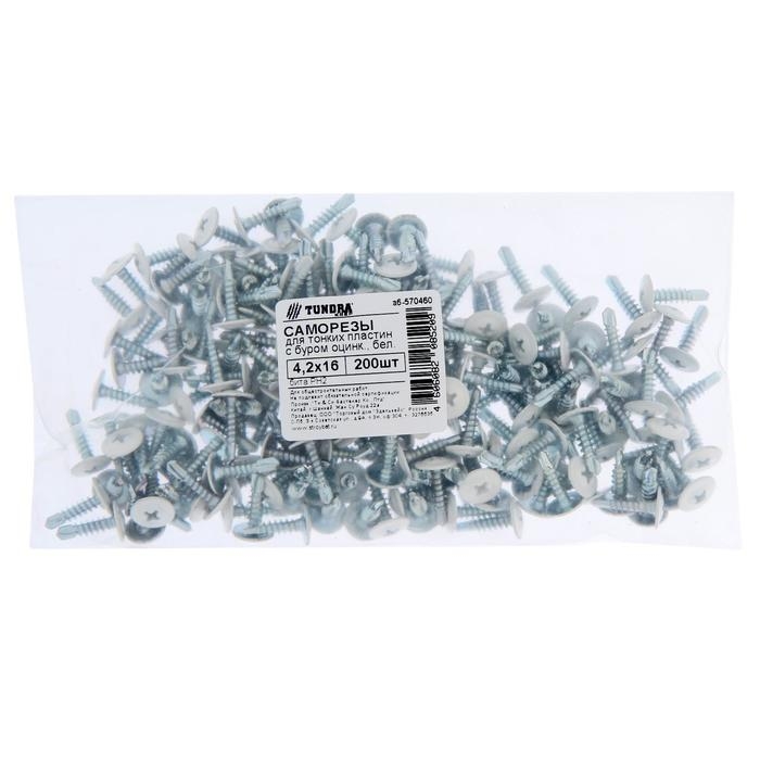 Саморезы ТУНДРА krep для тонк. пластин с буром 4.2x16, белый/белый цинк, 200 шт.