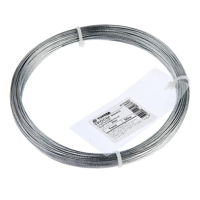 Трос стальной ТУНДРА krep DIN3055 1 мм, цинк, 30 м