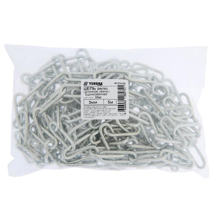 Цепь длиннозвенная ТУНДРА krep DIN763, 3 мм, цинк, 5 м