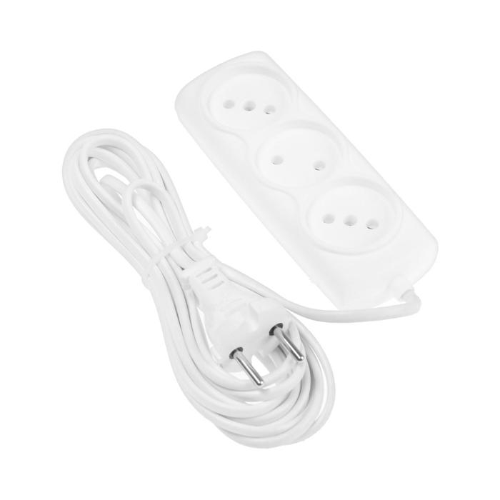 Удлинитель Smartbuy, 3 розетки, 5 м, 6 А, 1300 Вт, ШВВП 2х0.75 мм2, без з/к, белый