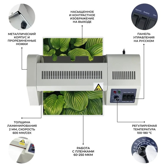 - Макс. Скорость ламинирования, мм/мин: 600.