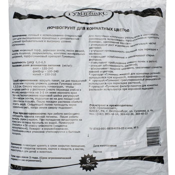 Почвогрунт Гумимакс РОЗА для комнатных цветов 5 литров