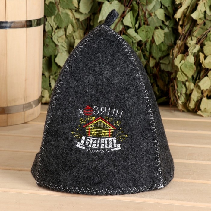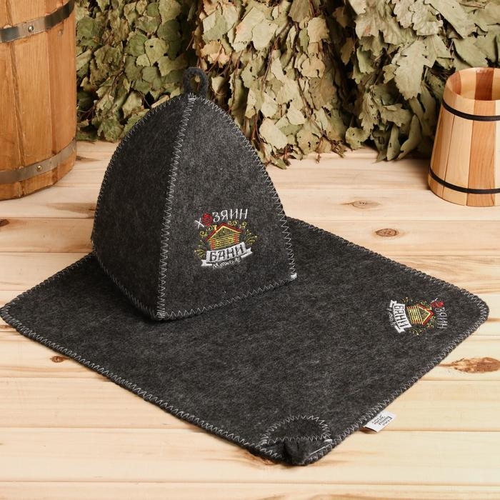 Набор банный: шапка и коврик "Хозяин бани" в пакете