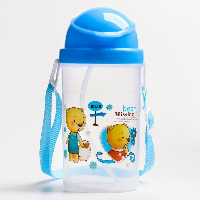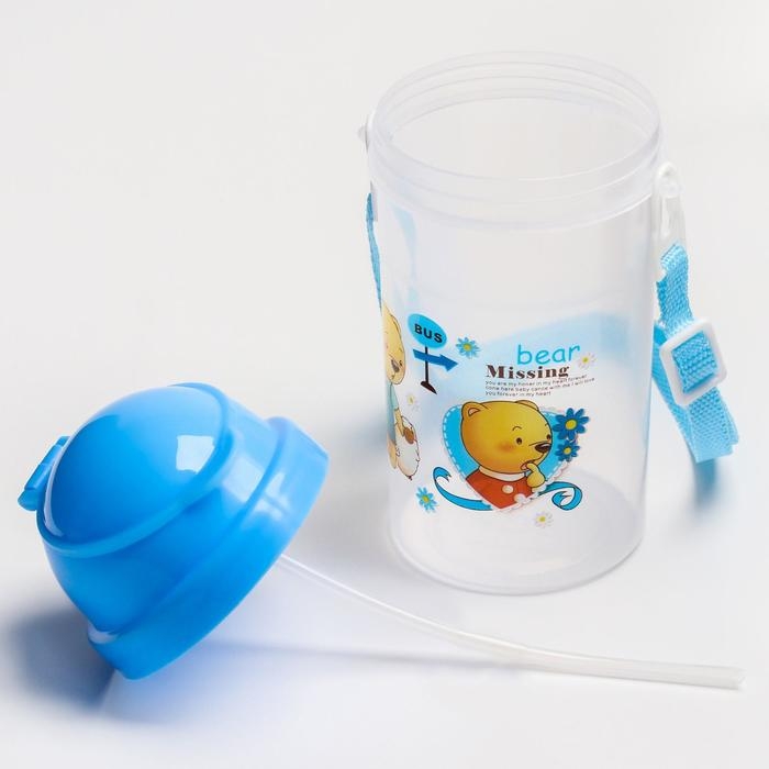 Поильник - непроливайка детский с силиконовой трубочкой и грузиком, от 9 мес., 350 мл., на ленте, цвет голубой, Крошка Я