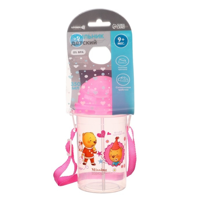 Поильник детский с силиконовой трубочкой, 350 мл., цвет МИКС
