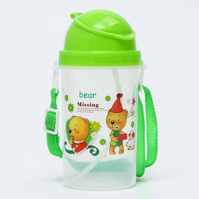 Поильник с силиконовой трубочкой, 340 мл., цвет Зеленый