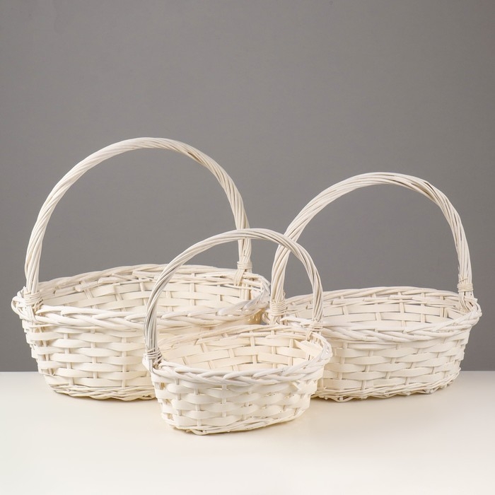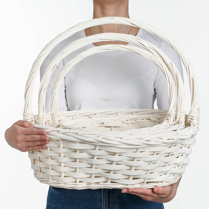 Набор корзин плетеных, 47х39х17/43, 40х32х15/38, 33х25х13/33 см, 3 шт., белый, ива