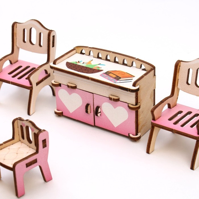 Создайте миниатюру настоящей комнаты из деревянных деталей. Предметы мебели сделаны из экологически натурального и безопасного материала. Изделия выглядят очень реалистично и идеально подойдут как для игр малыша, так и в качестве декора для детской.