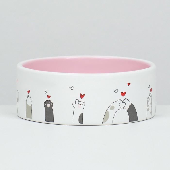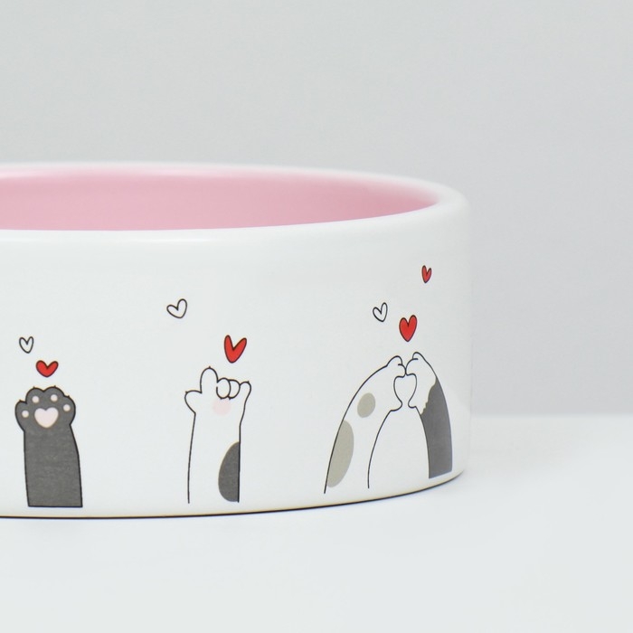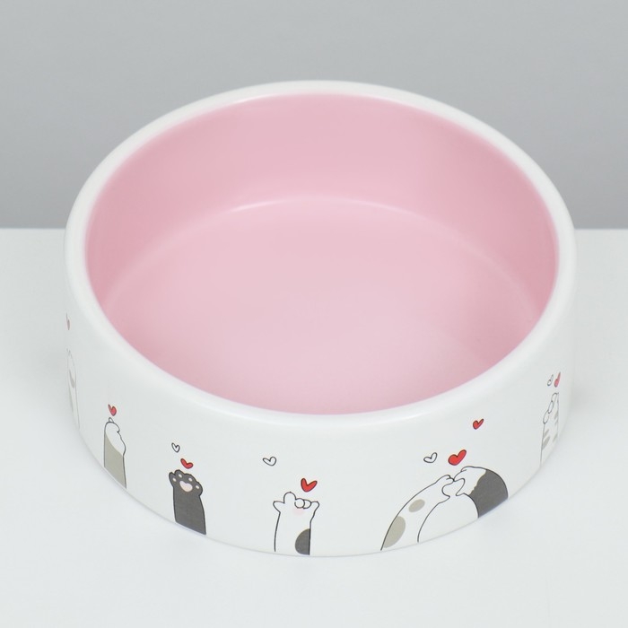 Миска керамическая "Любовь и коты"300 мл 12,5 x 4,5 cм, розово-белая