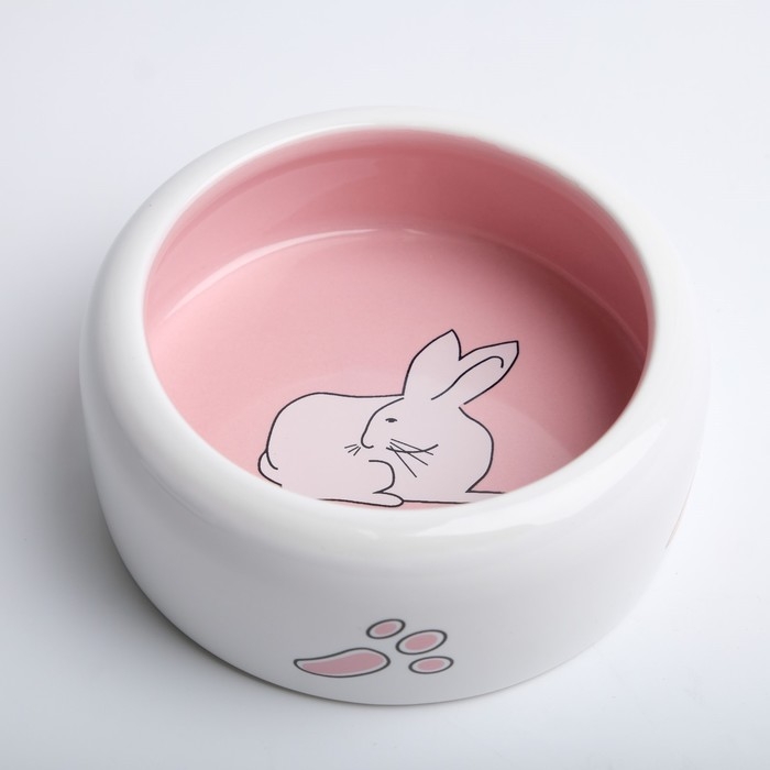 Миска керамическая "Заяц" 200 мл, 11 x 4,6 cм, белая/розовая