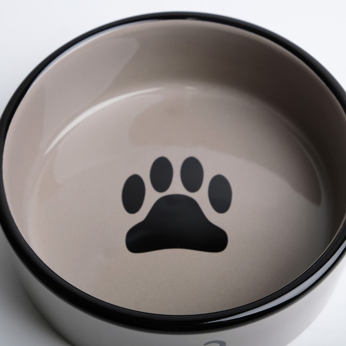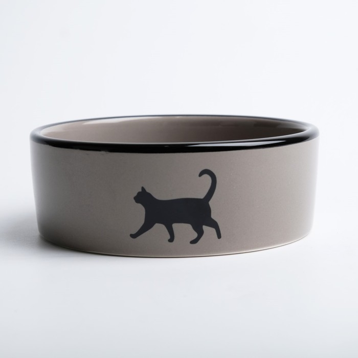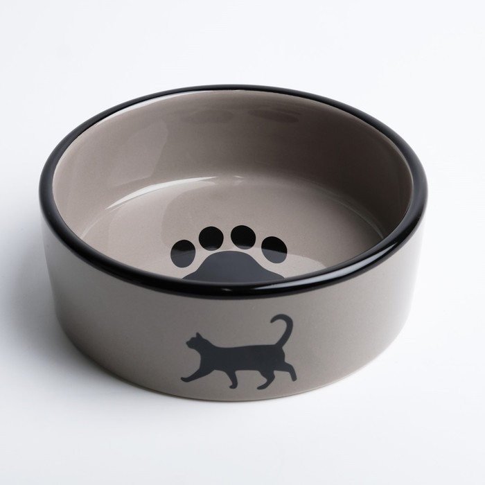 Миска керамическая "След с кошкой" 300 мл 12,5 x 4,5 cм, чёрно-серая