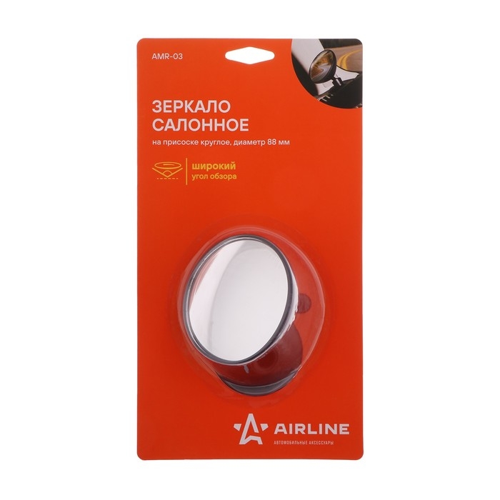 Зеркало Airline, салонное на присоске круглое, диаметр 88 мм, AMR-03