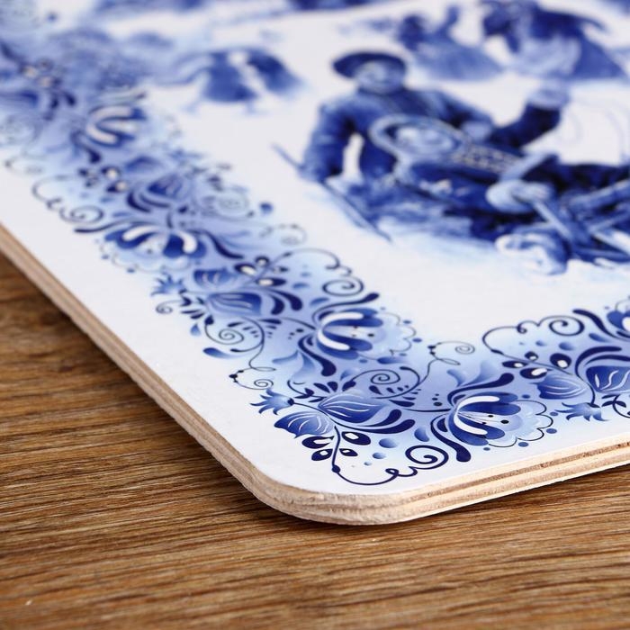 Доска разделочная сувенирная "Гжель. Катание на санках", 19,5×27,5 см