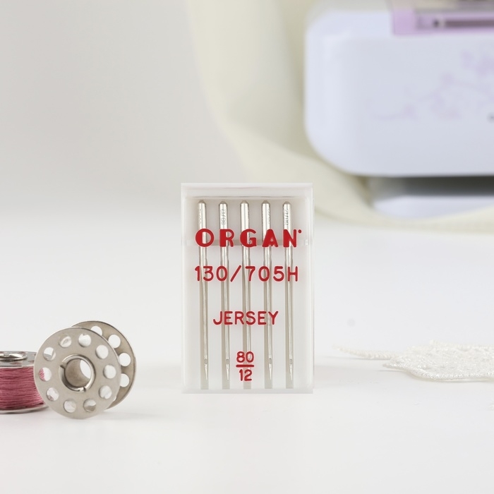Качество швейной иглы важно так же, как механизм машинки. Данные инструменты предназначены для вязаного трикотажа. Шариковое остриё раздвигает волокна, а не прокалывает их и не портит полотно.