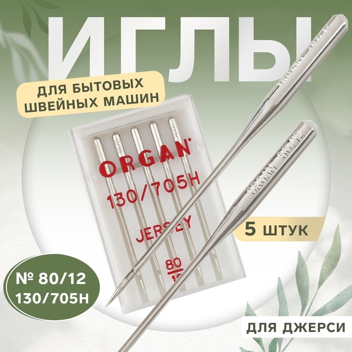 Иглы для бытовых швейных машин, для джерси, №80/12, 5 шт