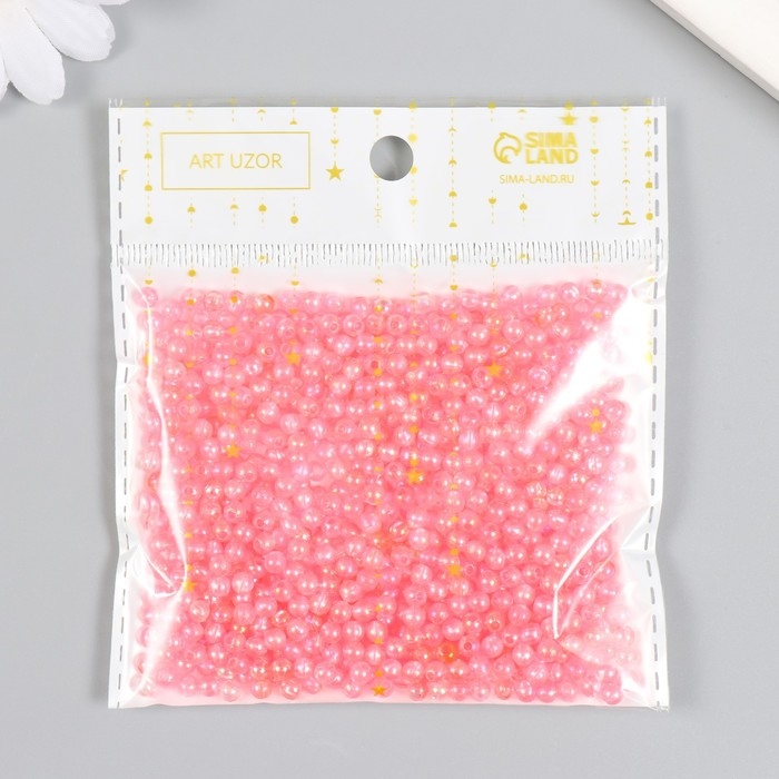 Бусины для творчества пластик "Розовый перламутр" набор 20 гр d=0,4 см