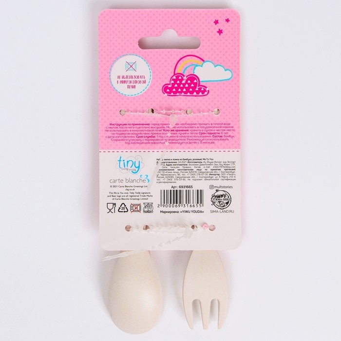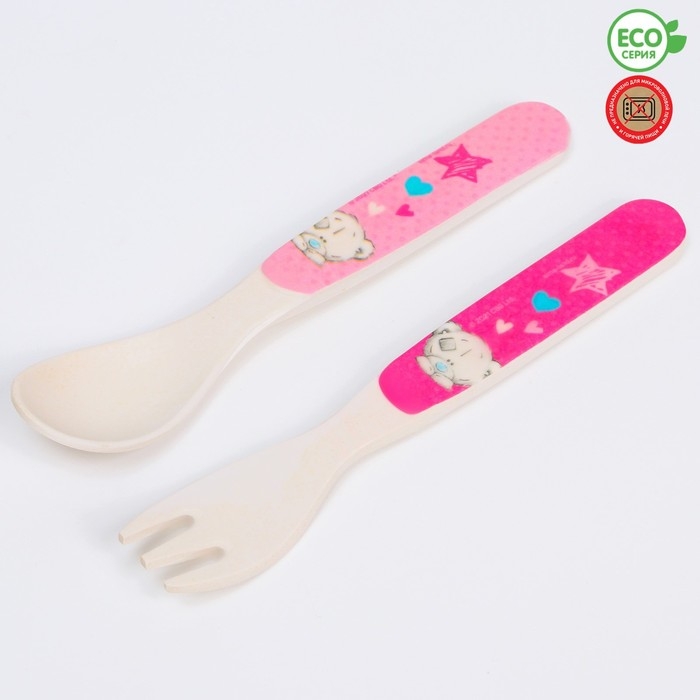 Набор детских столовых приборов из бамбука: вилка и ложка Me To You розовый