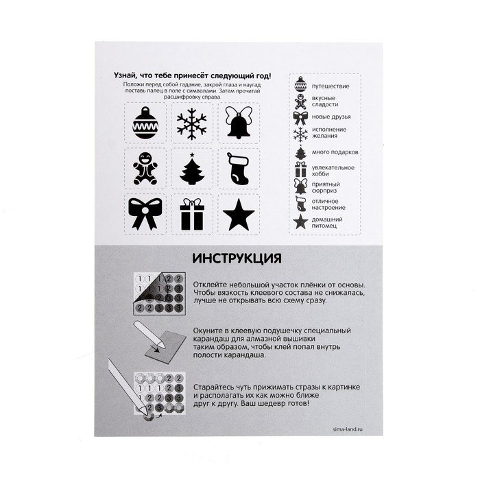 Чтобы получить сверкающую картинку, ребёнку предстоит разложить кристаллики специальным карандашом по схеме. Основа с клеевым покрытием будет надёжно удерживать стразы.