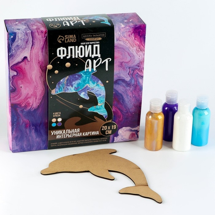 Набор для творчества. Флюид арт. Рисование акрилом «Удивительный дельфин»