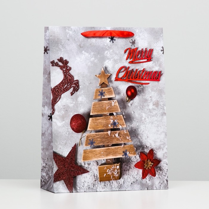 Пакет ламинированный "Деревянная ёлка" 32 х 42 х 12