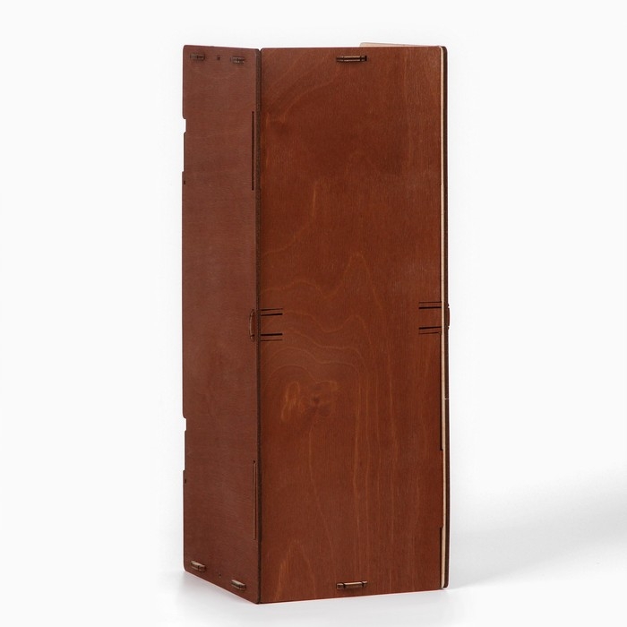 Отличный подарок для настоящих ценителей вина.Ящик для вина выполнен из качественной фанеры и имеет размер 13 x 13 x 34 см.
