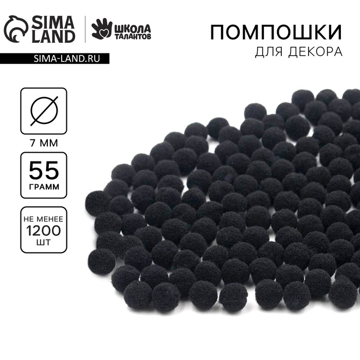 Набор текстильных деталей для декора. Помпоны для творчества «Чёрные», 55 гр