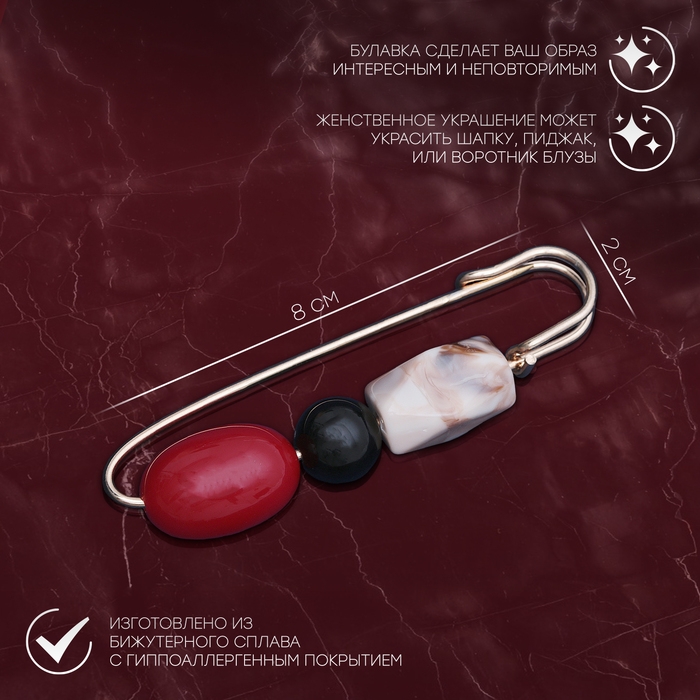 Данная булавка – настоящая находка для модниц, предпочитающих нетривиальные аксессуары. Брошь-булавка станет не только оригинальным дополнением вашего наряда, но и позволит без труда приколоть при необходимости палантин или шейный платок. Используйте её в качестве украшения шляпки, рубашки или галстука. Булавка «Камни», 8 см, цветная в золоте внесёт особую нотку изящности в ваш образ.