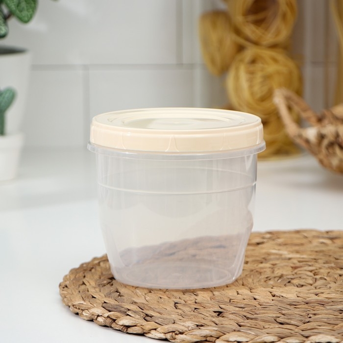 Банка для сыпучих продуктов изготовлена из пластика. Имеет плотно закрывающуюся крышку, которая защищает еду от влаги и посторонних запахов. В ёмкости удобно хранить крупы, специи, макаронные изделия, сахар, муку и бобовые.