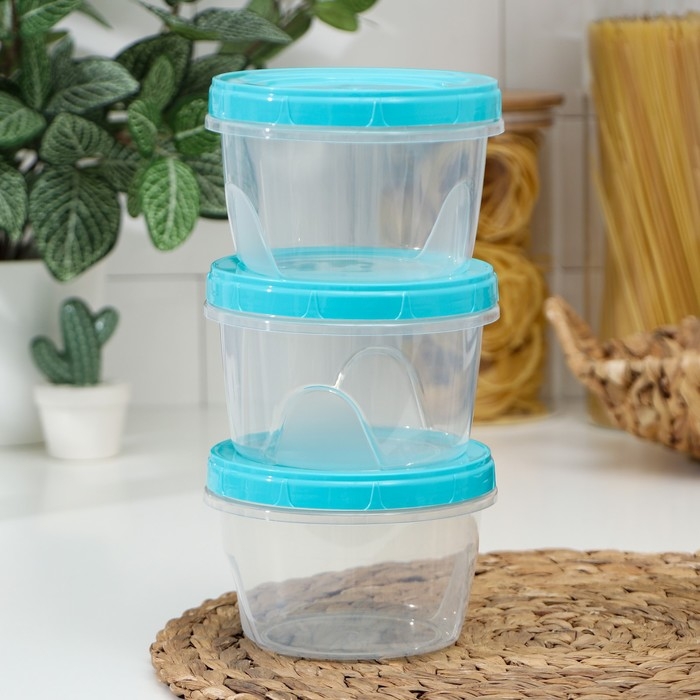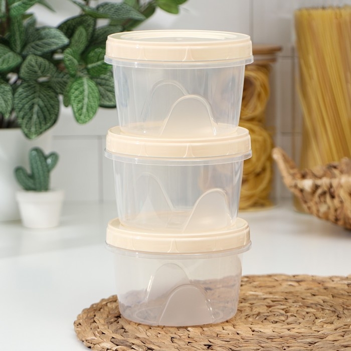 Набор пищевых контейнеров «Респект», 3 шт: 400 мл, 700 мл, 1.2 л, цвет прозрачный, крышка серая