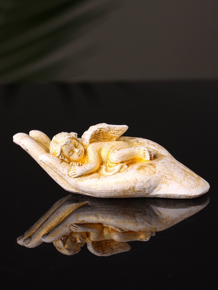 Фигура "Ангелок на ладони спит" малый, 3х7х3 см, позолота