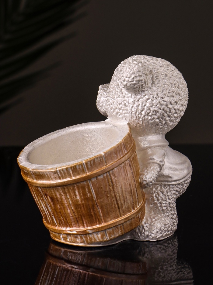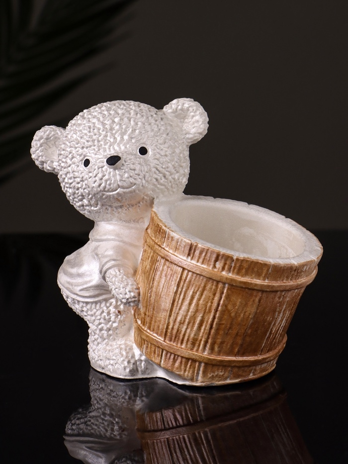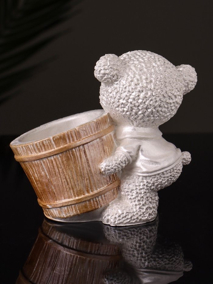 Кашпо "Медведь с горшочком" 9х10х6 см,перламутр
