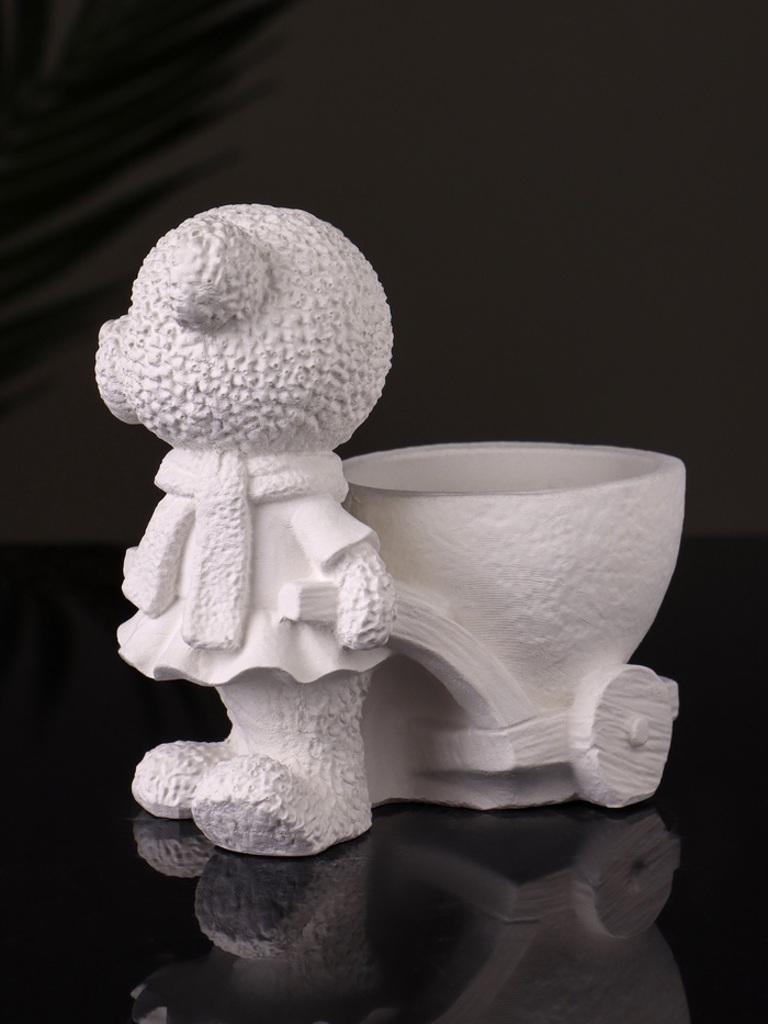 Кашпо "Медведица с тележкой" 10х10х6 см, натуральный