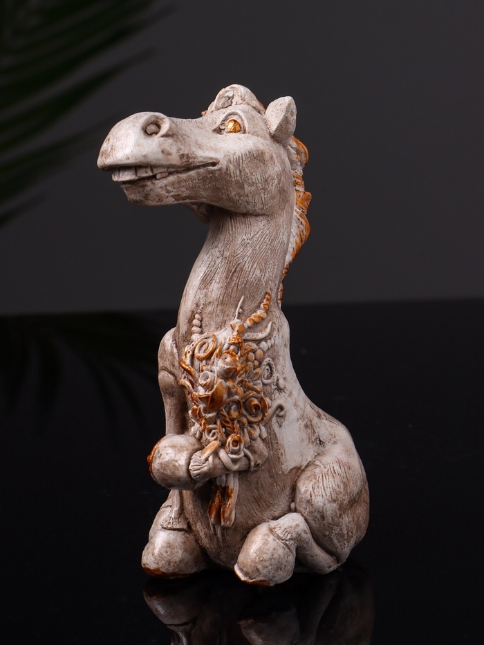 Статуэтка "Конь с букетом" 11см, цвет бежевый