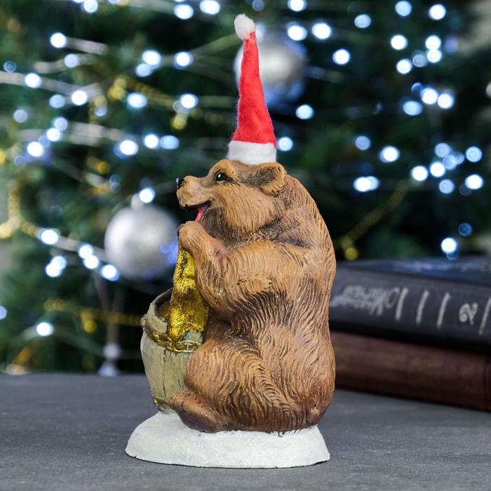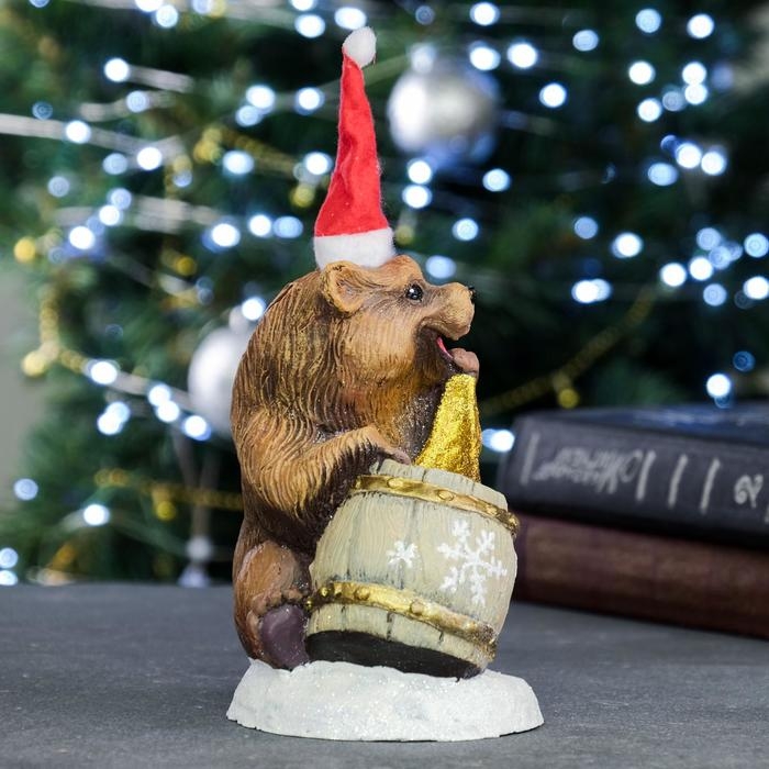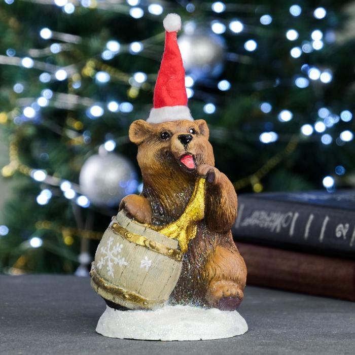 Копилка для денег «Медведь с бочонком новогодний», 12×8×14 см