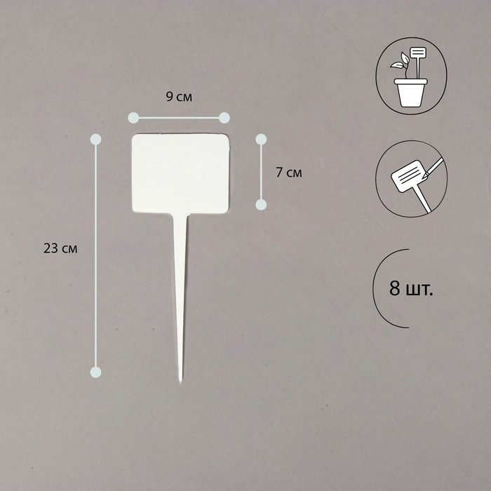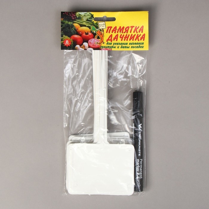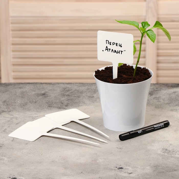 Таблички садовые для маркировки, 22 см, с маркером, набор 8 шт., пластик, белые