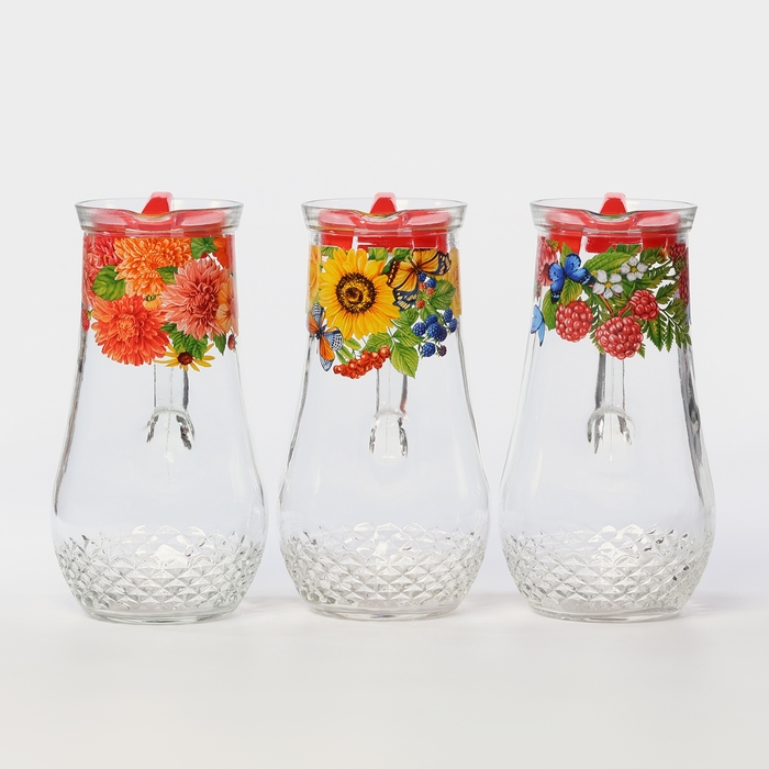 Кувшин стеклянный с крышкой, 1,2 л, рисунок МИКС