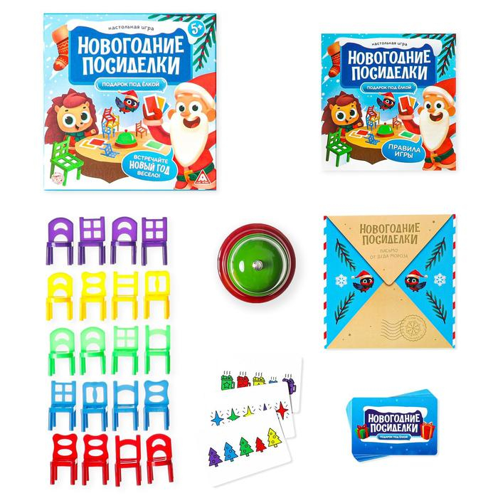 Новогодняя настольная игра «Новый год: Посиделки. Подарок под ёлкой», 24 карты, 20 стульев, звонок, 5+