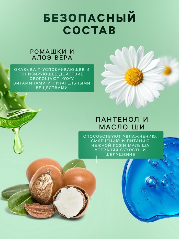 Детский увлажняющий крем разработан специально для нежной кожи малышей. Его формула на 96% состоит из натуральных компонентов, включая пантенол, масло ши, экстракты ромашки и алоэ вера.