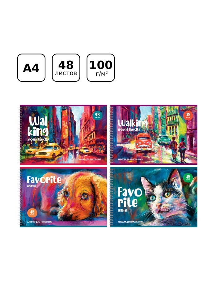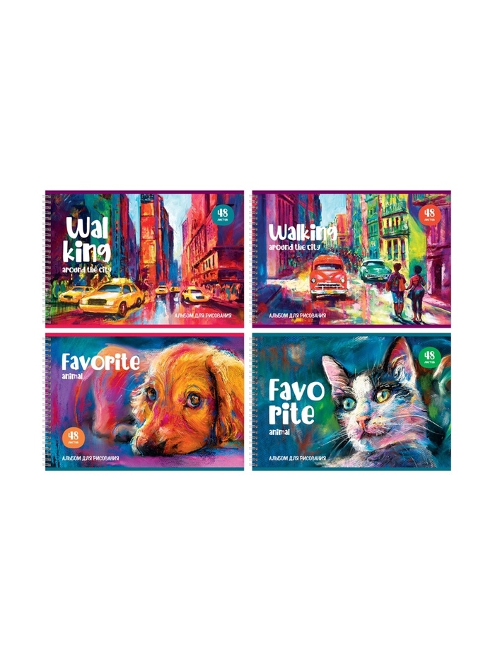 Альбом д/рис А4 48л греб Акварельный мир, обл мел карт, бл офс 100г/м2, МИКС