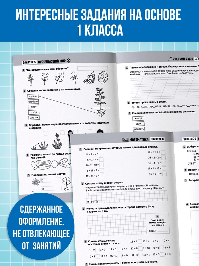 Тренажёр "Сборник летних заданий за курс 1 класса", 100 страниц.